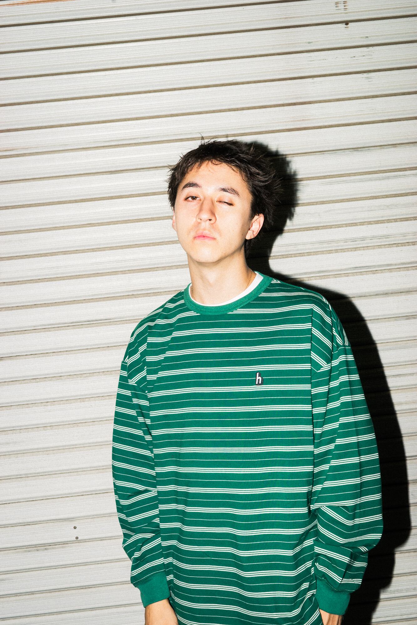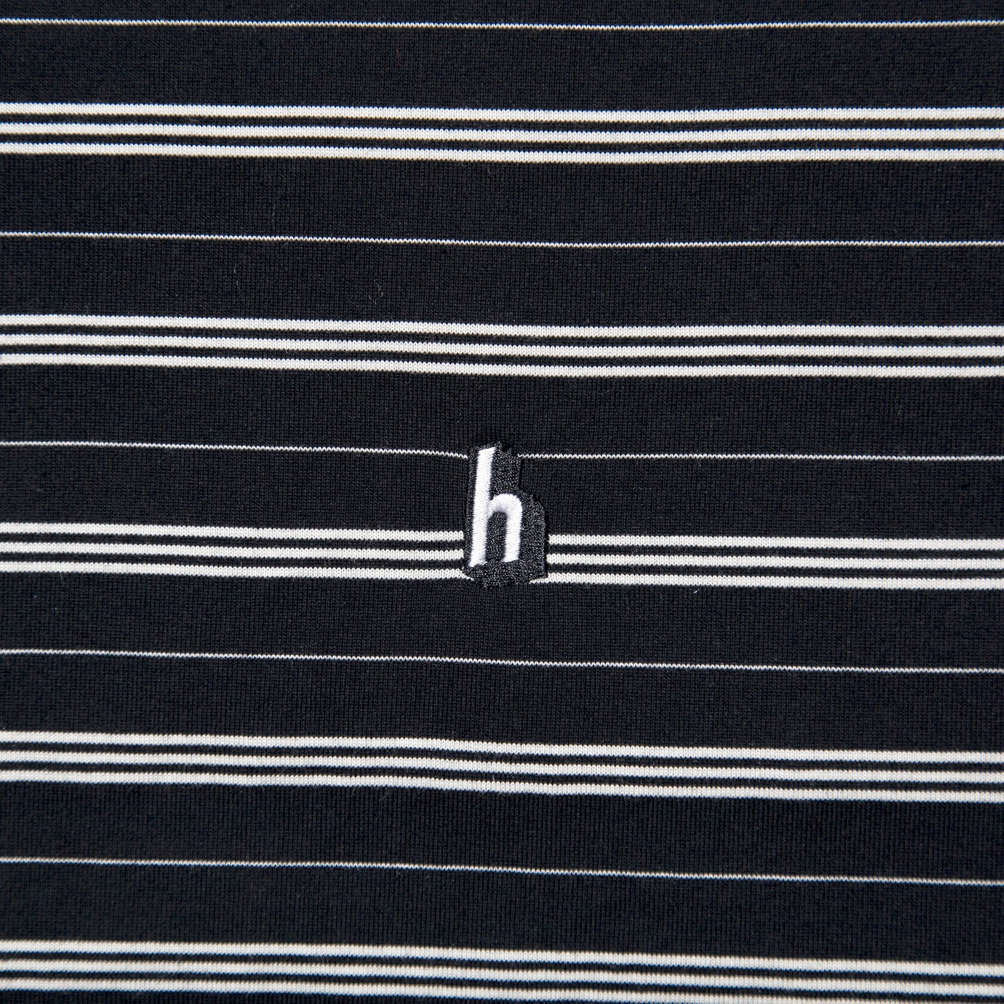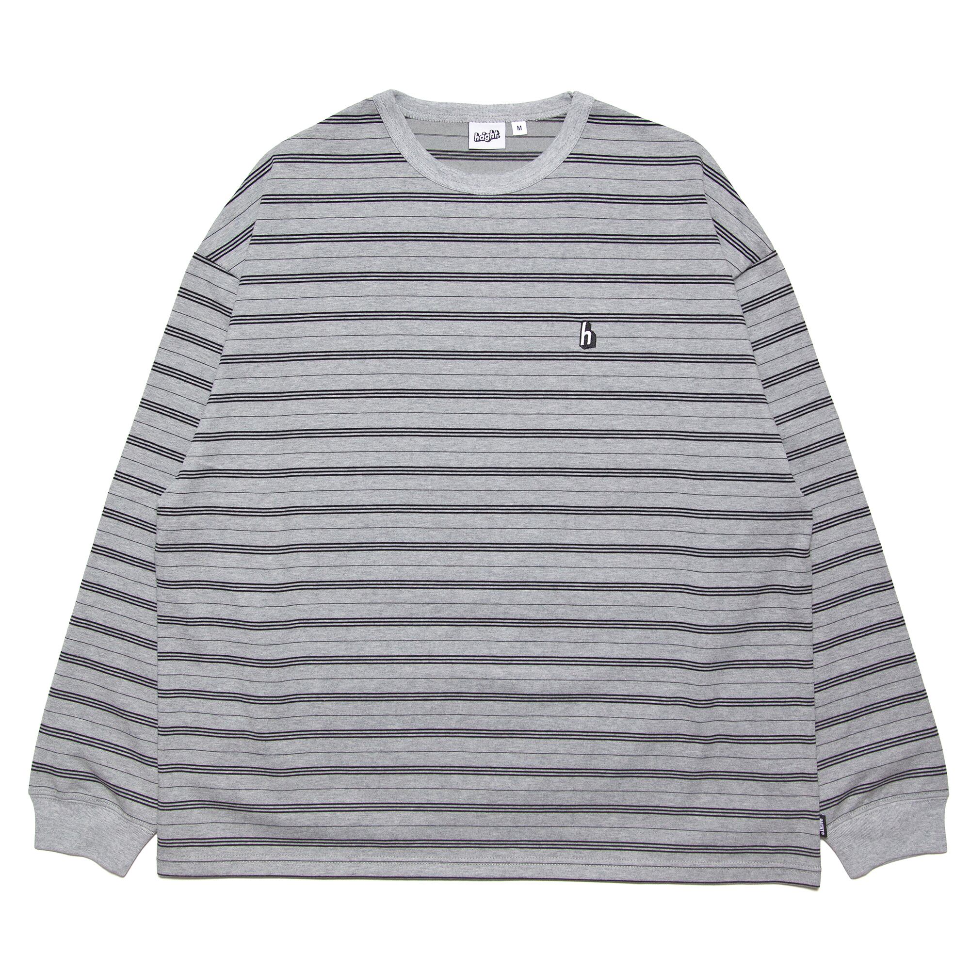 クラシックなボーダーに遊び心を添えた、天竺素材のボックスシルエットLS Tee。柔らかな肌ざわりの天竺生地を使用し、ゆとりのあるボックスシルエットでリラックス感のある着用感に。左胸には“h”ロゴの刺繍をワンポイントで配置。ベーシックなカラー展開で、1枚着はもちろんインナー使いにも重宝します。