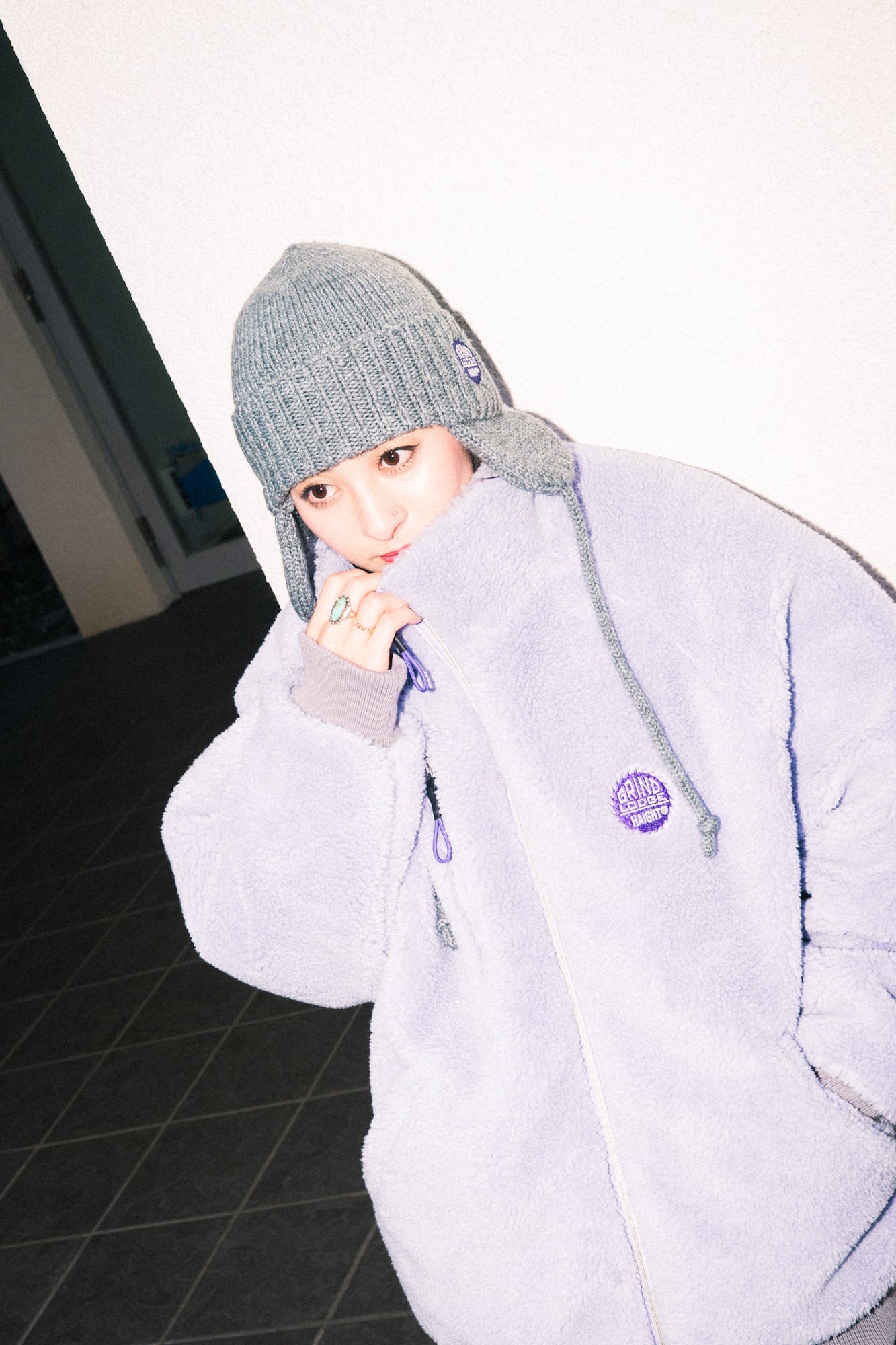 GRINDLODGEとのコラボレーションで仕上げたドッグイヤー付きのニットキャップ。素材にはアクリルウールの混紡糸を使用。柔らかさと程よい保温性で、伸縮性もあり、快適なフィット感を実現します。耳当て部分は下ろした際と、上げた際で別のデザインになる遊び心ある仕様。アウトドアやストリートの空気感に寄り添いつつ、コーディネートに個性を加えるアイテムです。