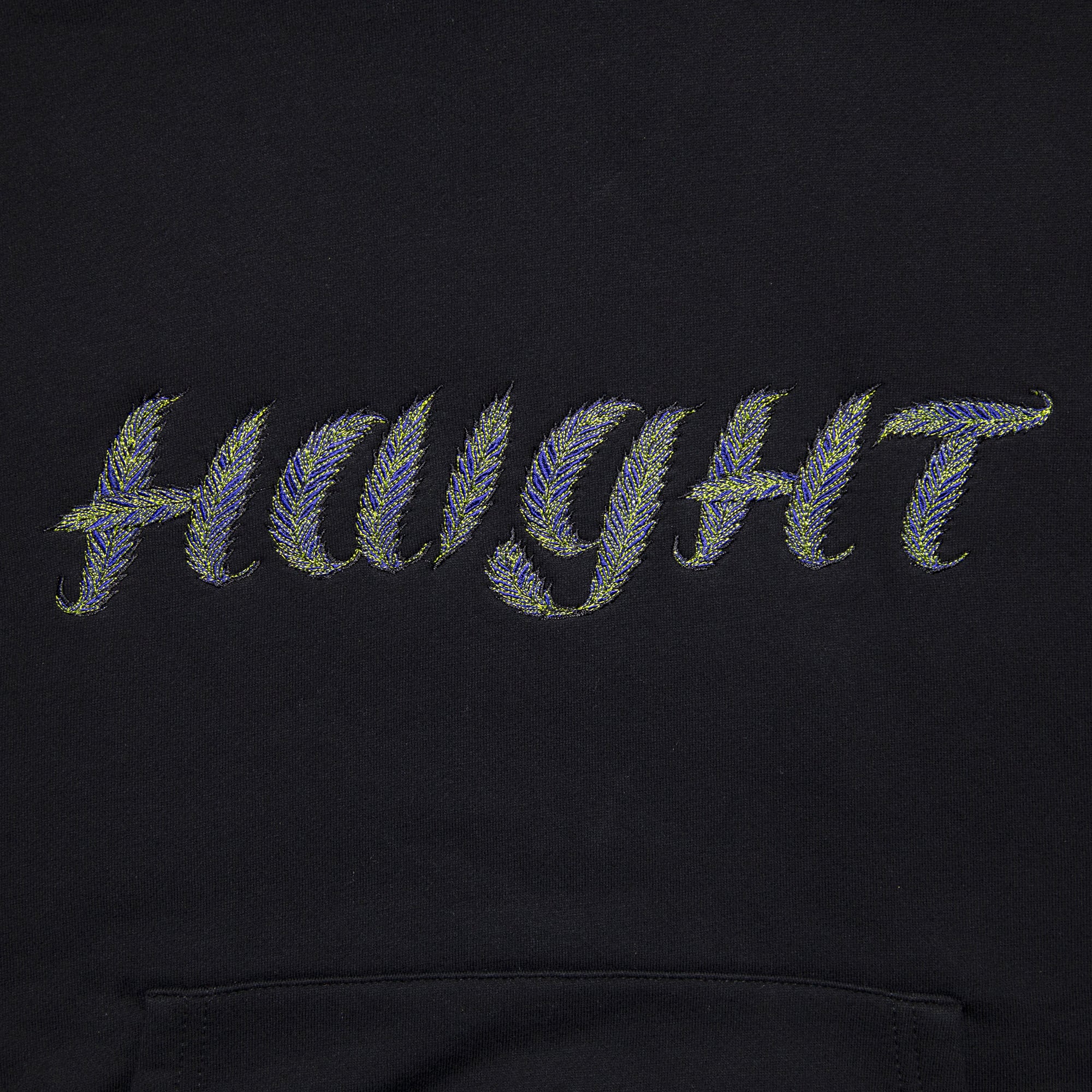 GRINDLODGEグラフィックデザイナー"KTCN"作、リーフモチーフのHAIGHTロゴを繊細な刺繍で立体的に再現。独特なタッチと色使いが、アートピースのような存在感を放つ。ボディは裏起毛のコットンスウェット素材を使用。身幅・袖にゆとりを持たせたブランドオリジナルのルーズシルエットで、1枚でもスタイリングが決まる仕上がり。