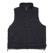 三角形のキルティングを全面に施した、ナイロン素材の中綿ベスト。
