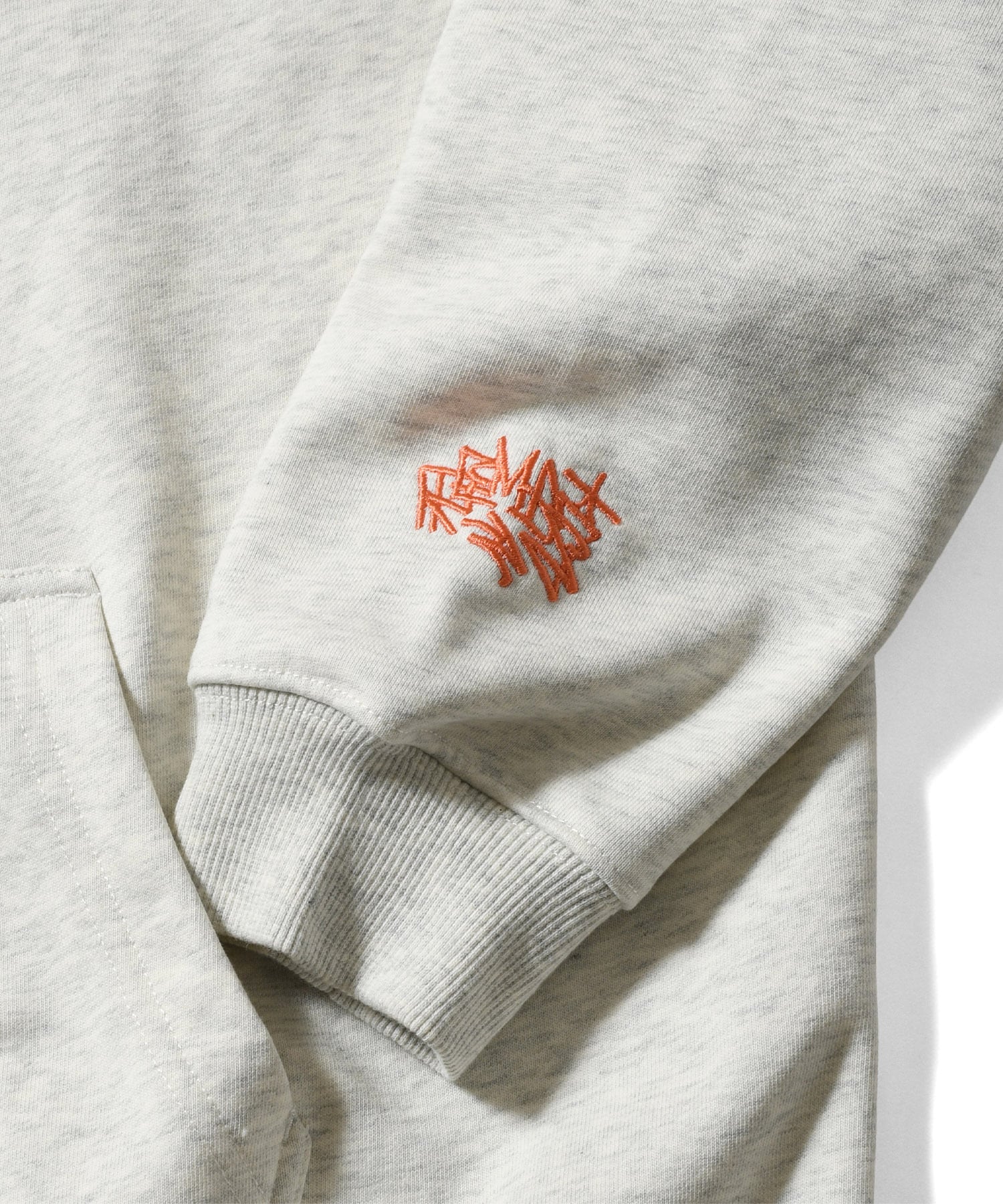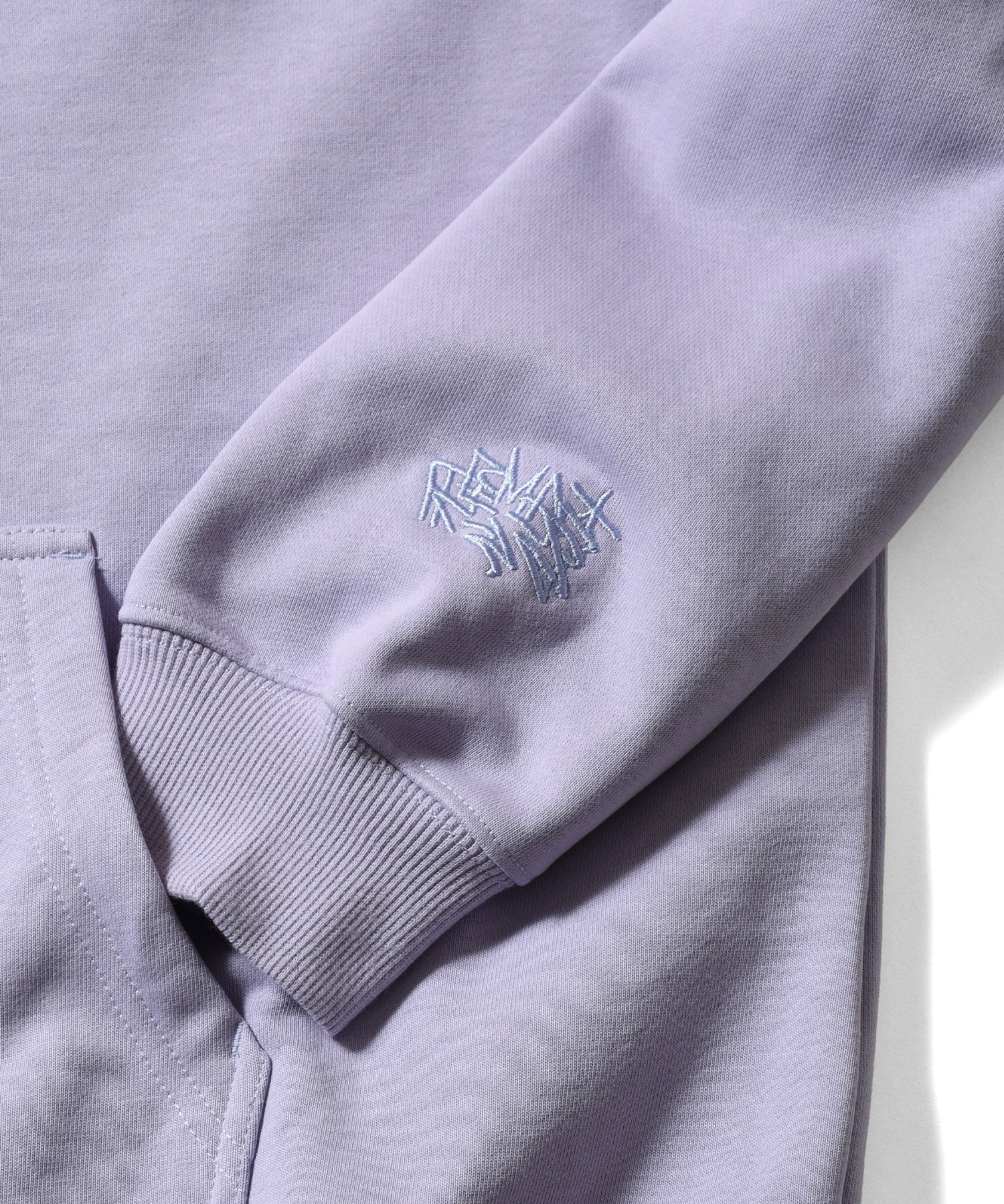 左袖にもREMIOのシグネチャーが刺繍で落とし込まれたプルオーバーフーディ。