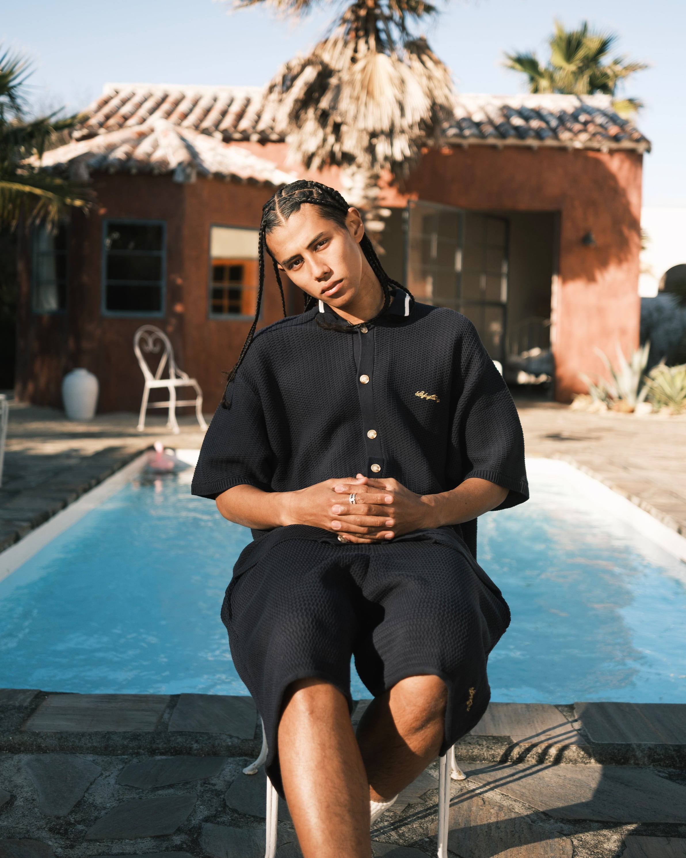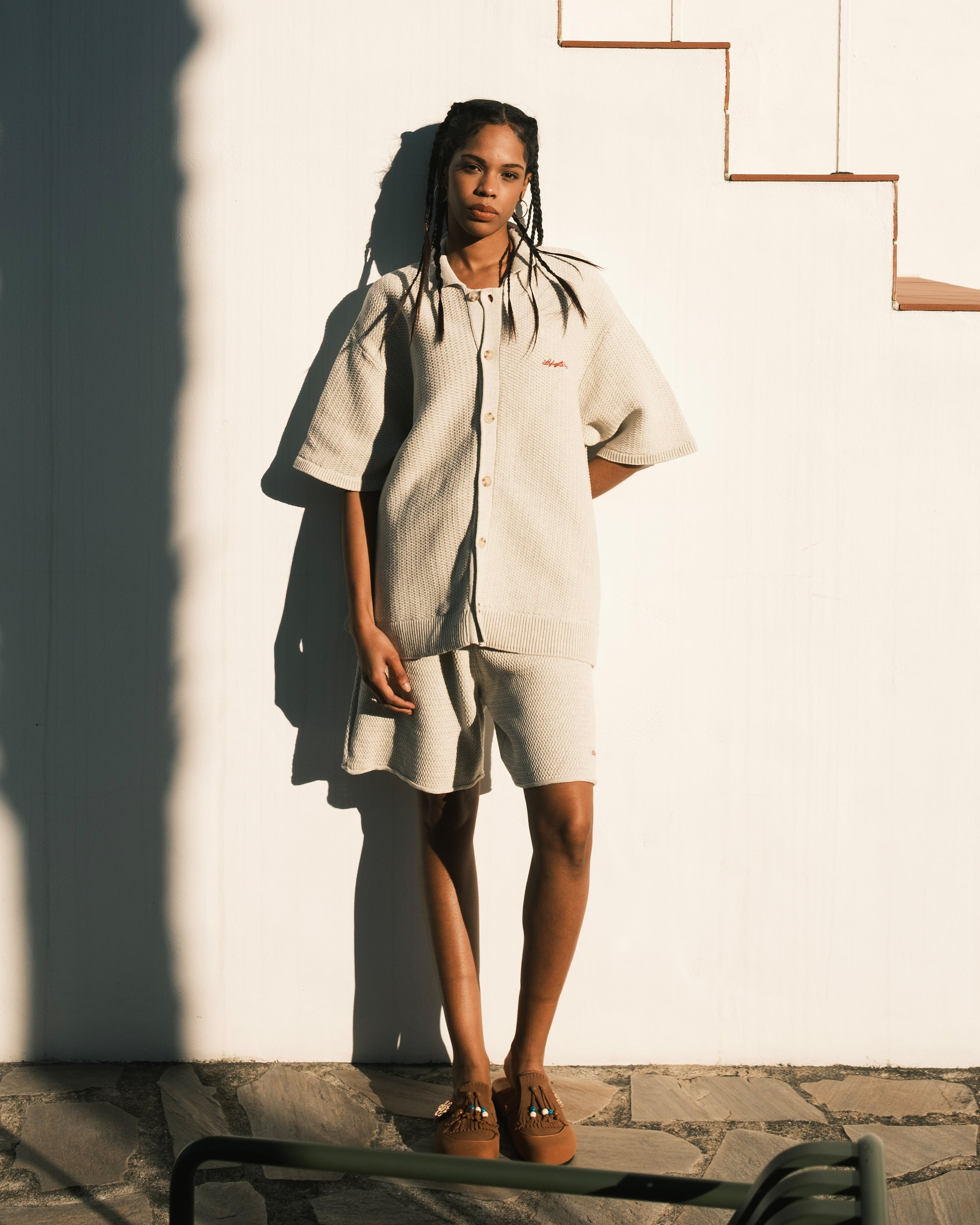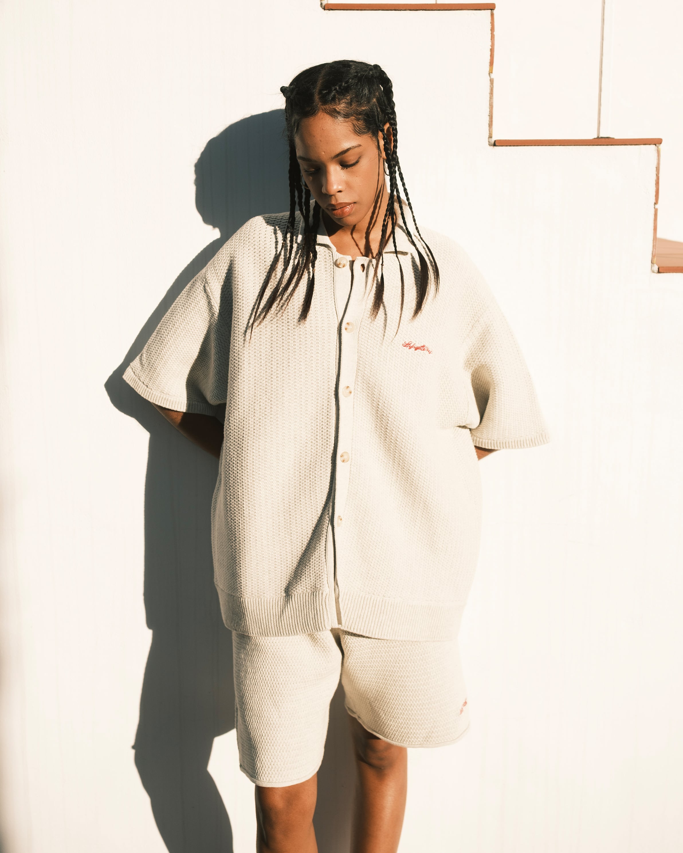 ざっくりとした凹凸感のあるラーベン編みが特徴の、春夏に活躍するサマーニットシャツ。