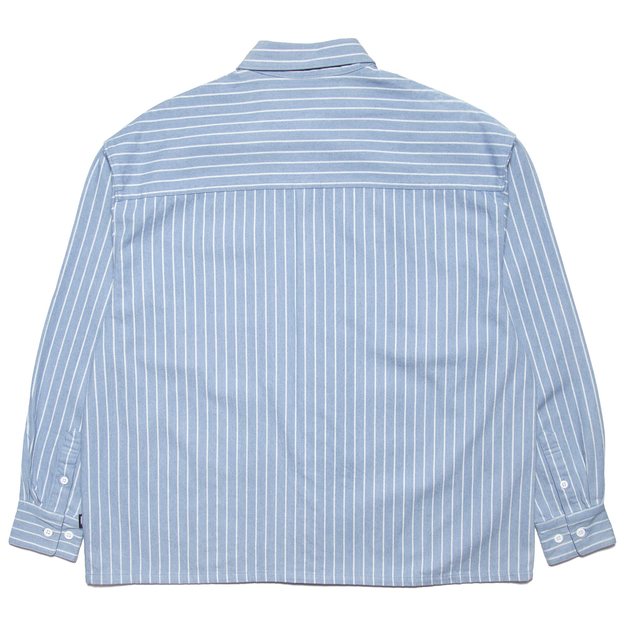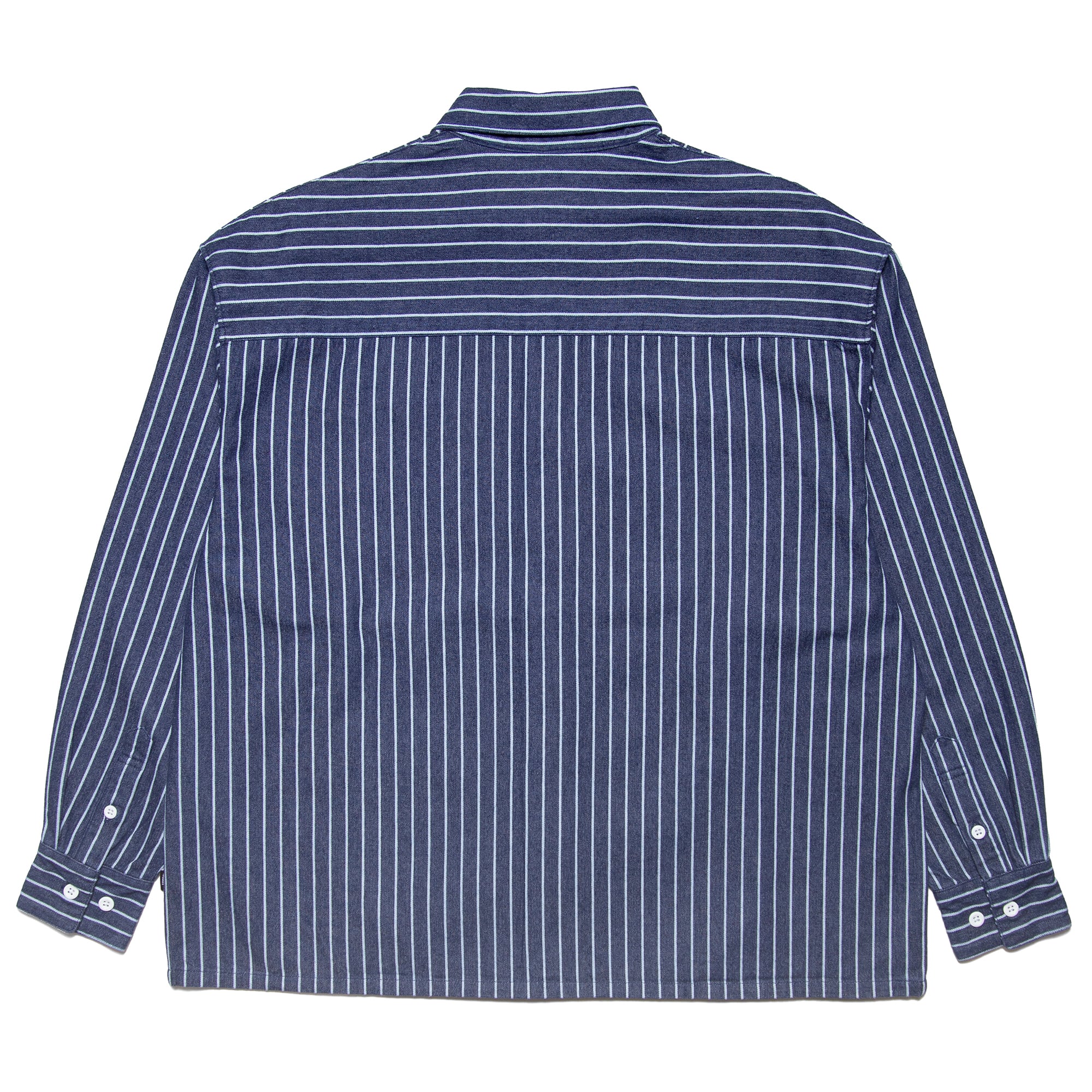 春夏シーズンに最適なストライプデニム生地を使用したロングスリーブシャツ。