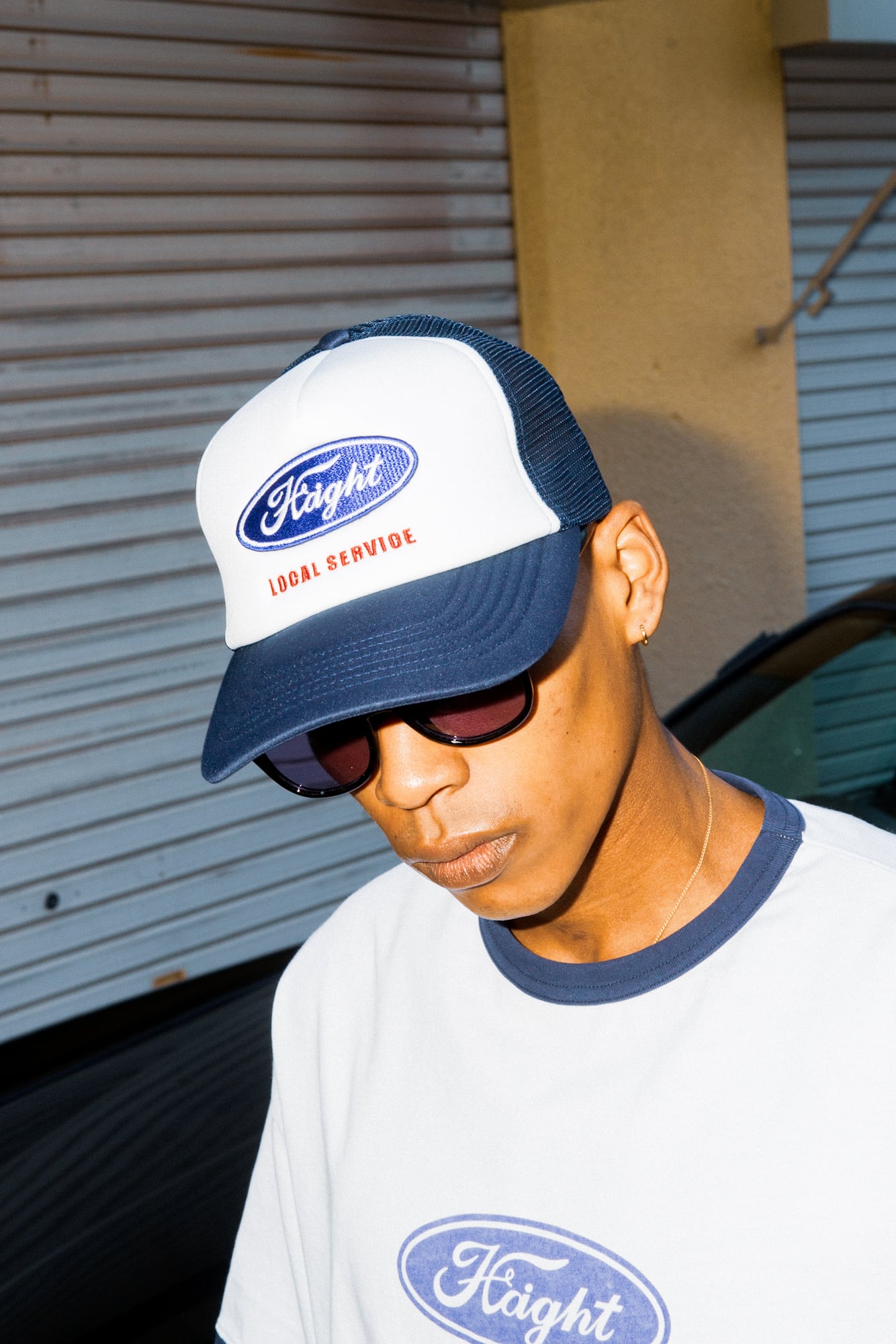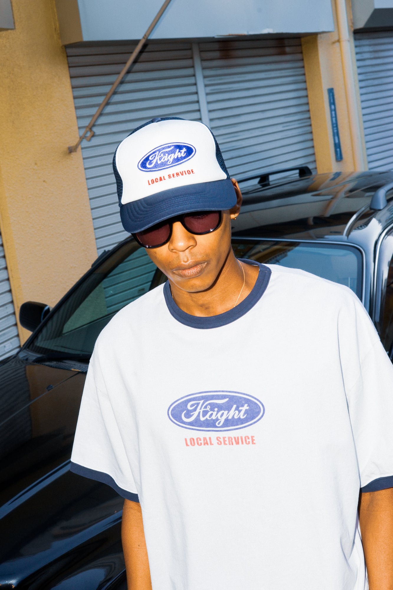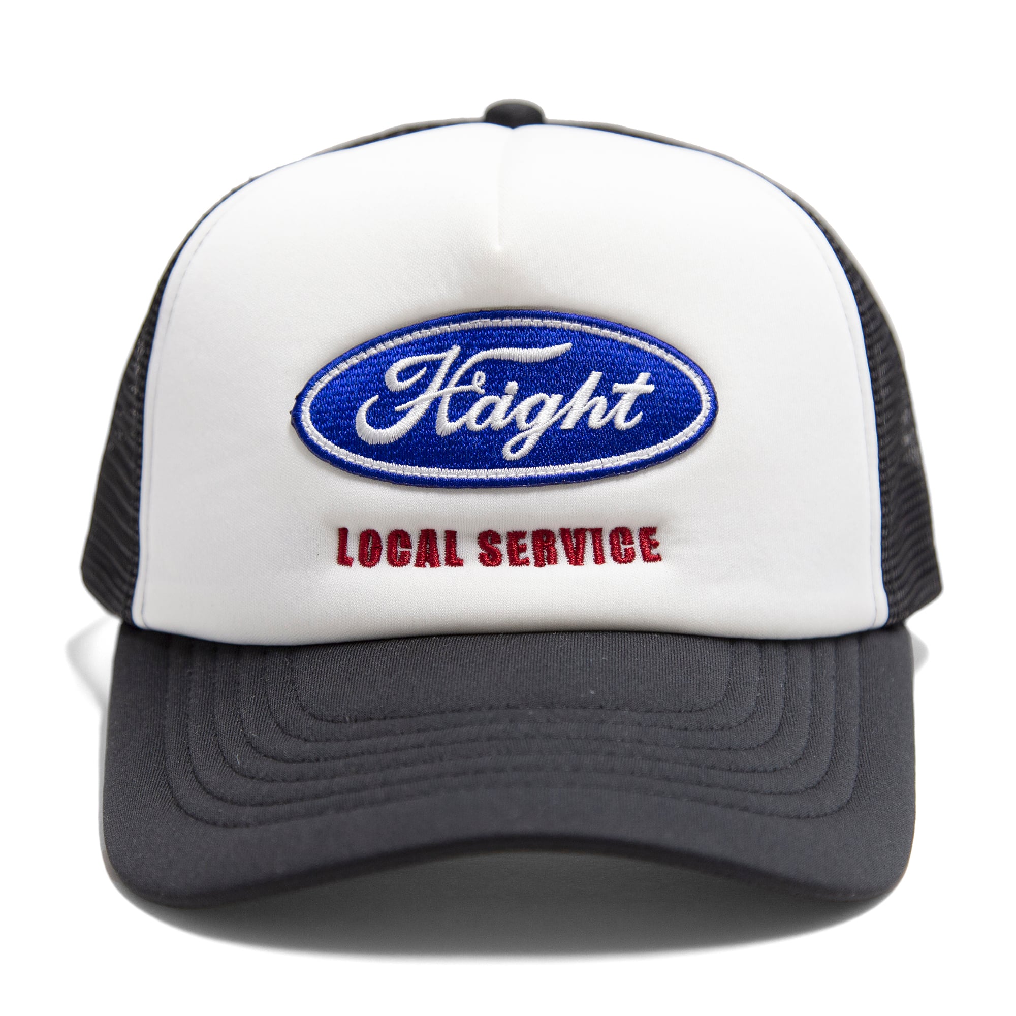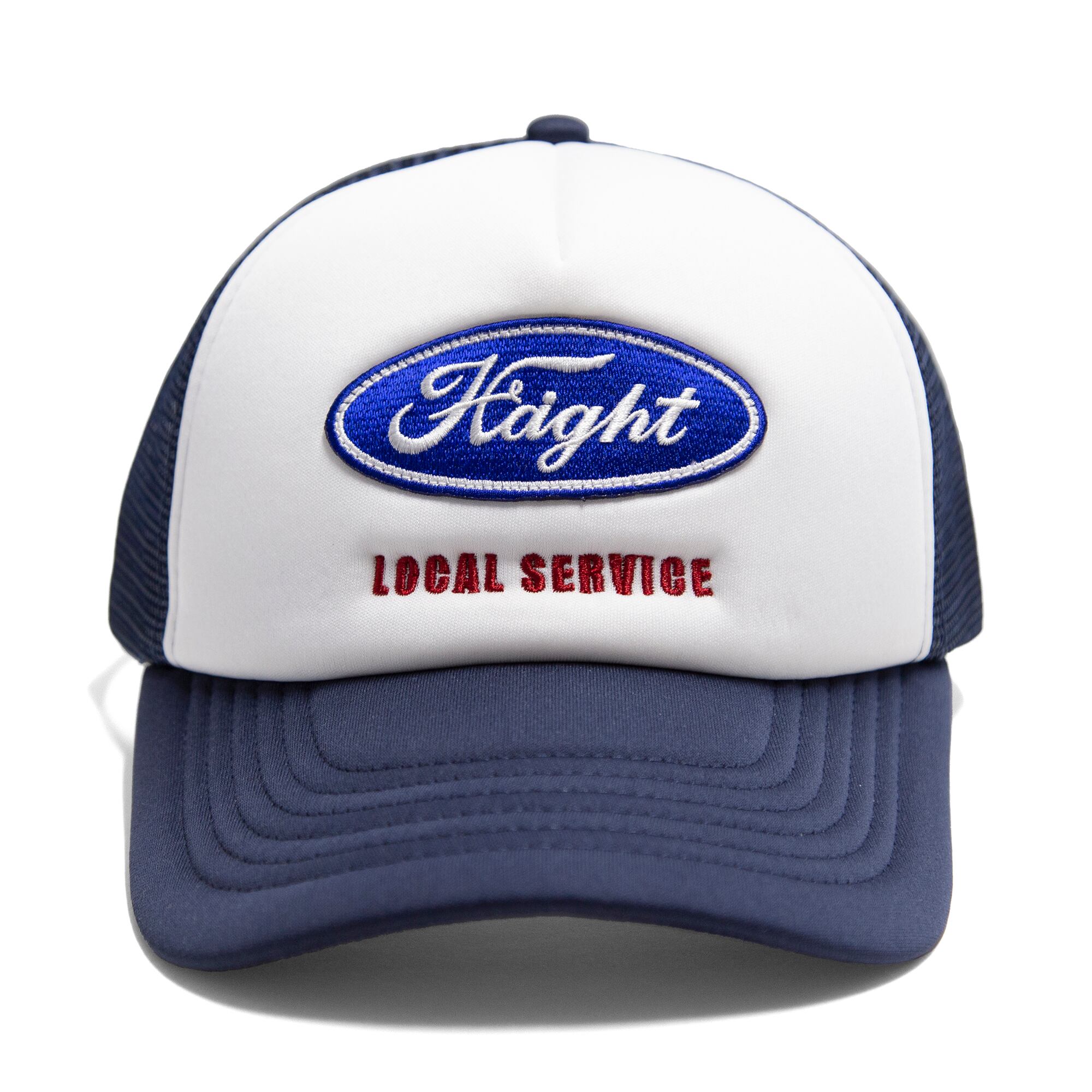 フロントには、クラシカルな雰囲気を生むウレタン素材で、存在感のある表情に仕上げています。オーバルロゴはワッペン仕様、その下の「LOCAL SERVICE」は刺繍で表現。異なる質感が組み合わさることで、シンプルながら立体感と奥行きのあるデザインにまとまったアイテムです。