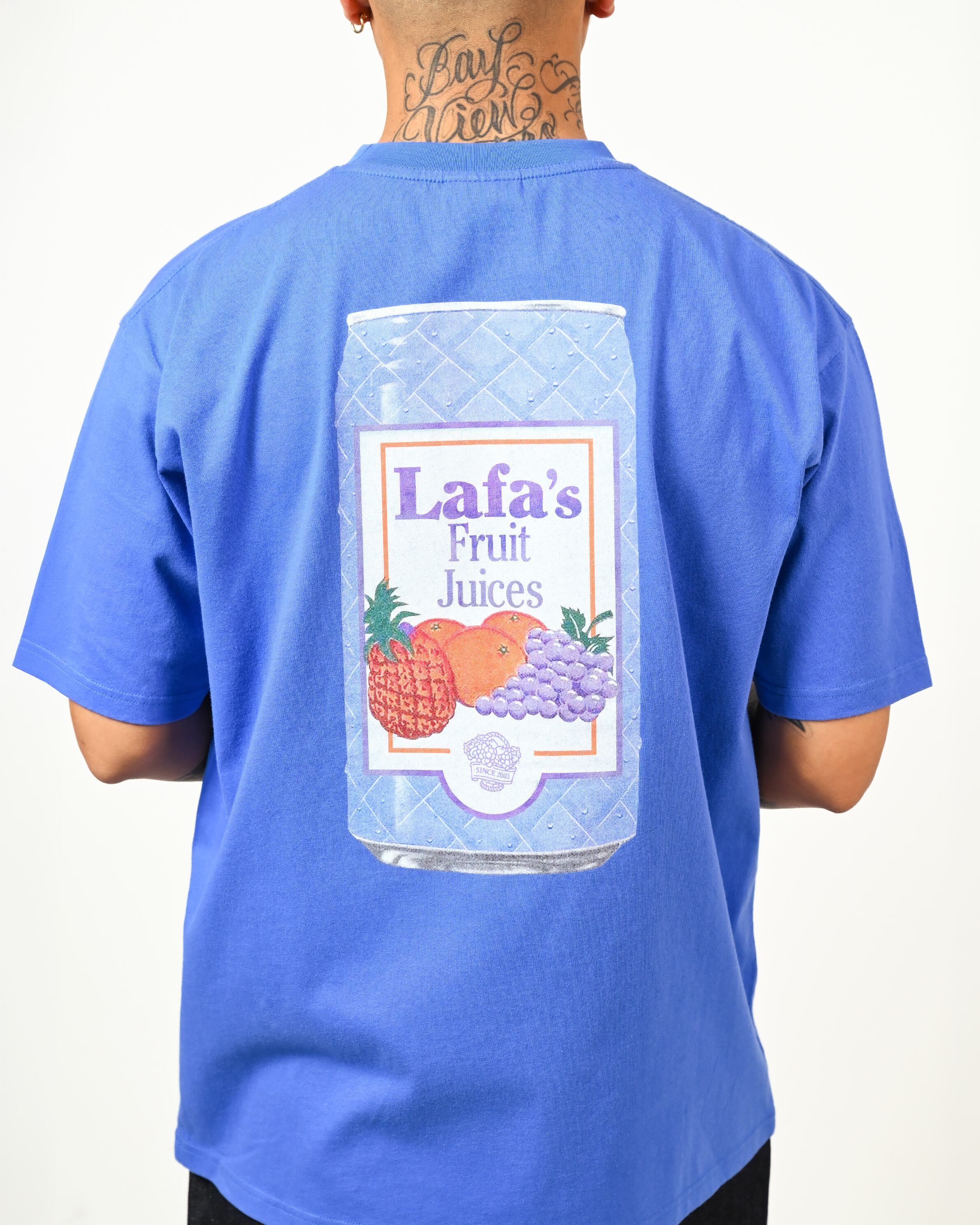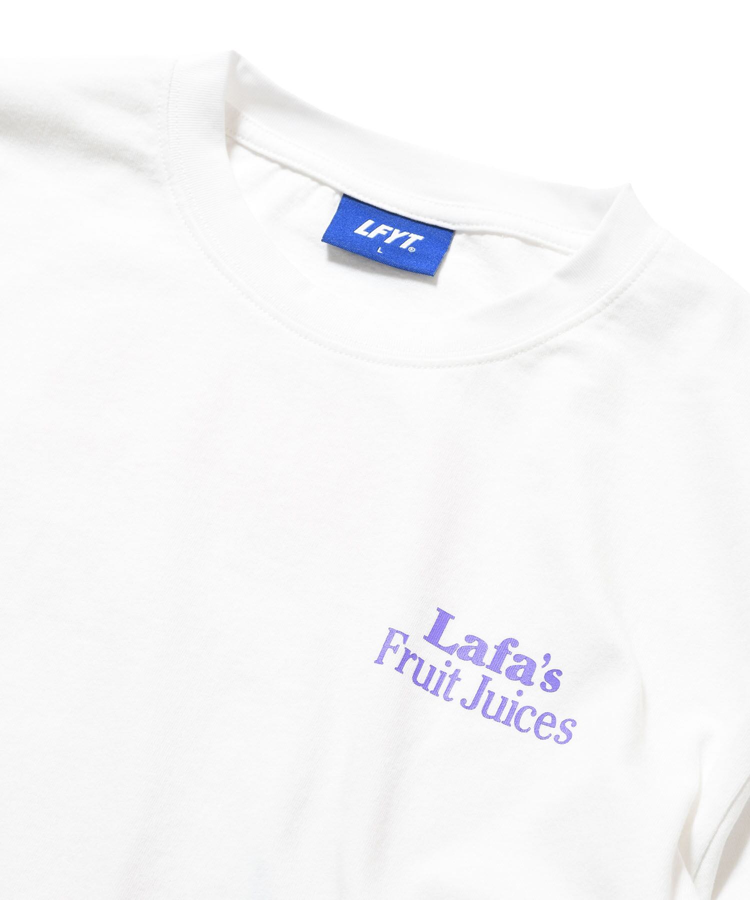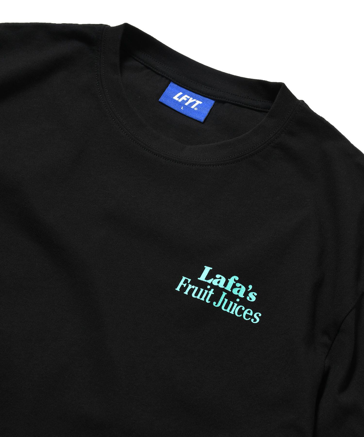 フロントは “Lafa's Fruit Juices” のタイポグラフィをシンプルに配置。