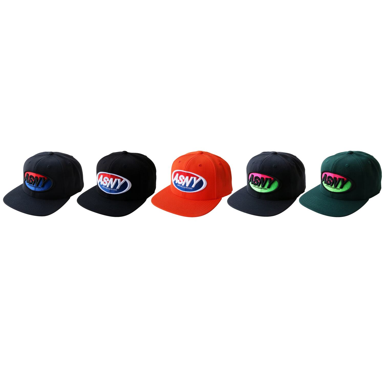 " ASNY "が厚盛りの刺繍で施されたベースボールキャップです。