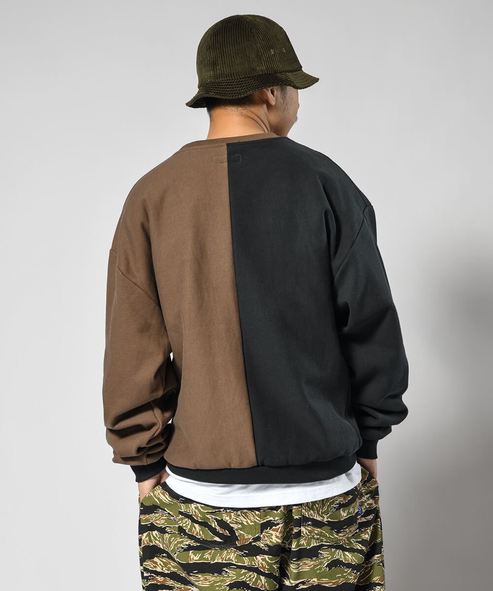 タフなボディとルーズシルエットが魅力の2トーンカラークルーネックスウェット!