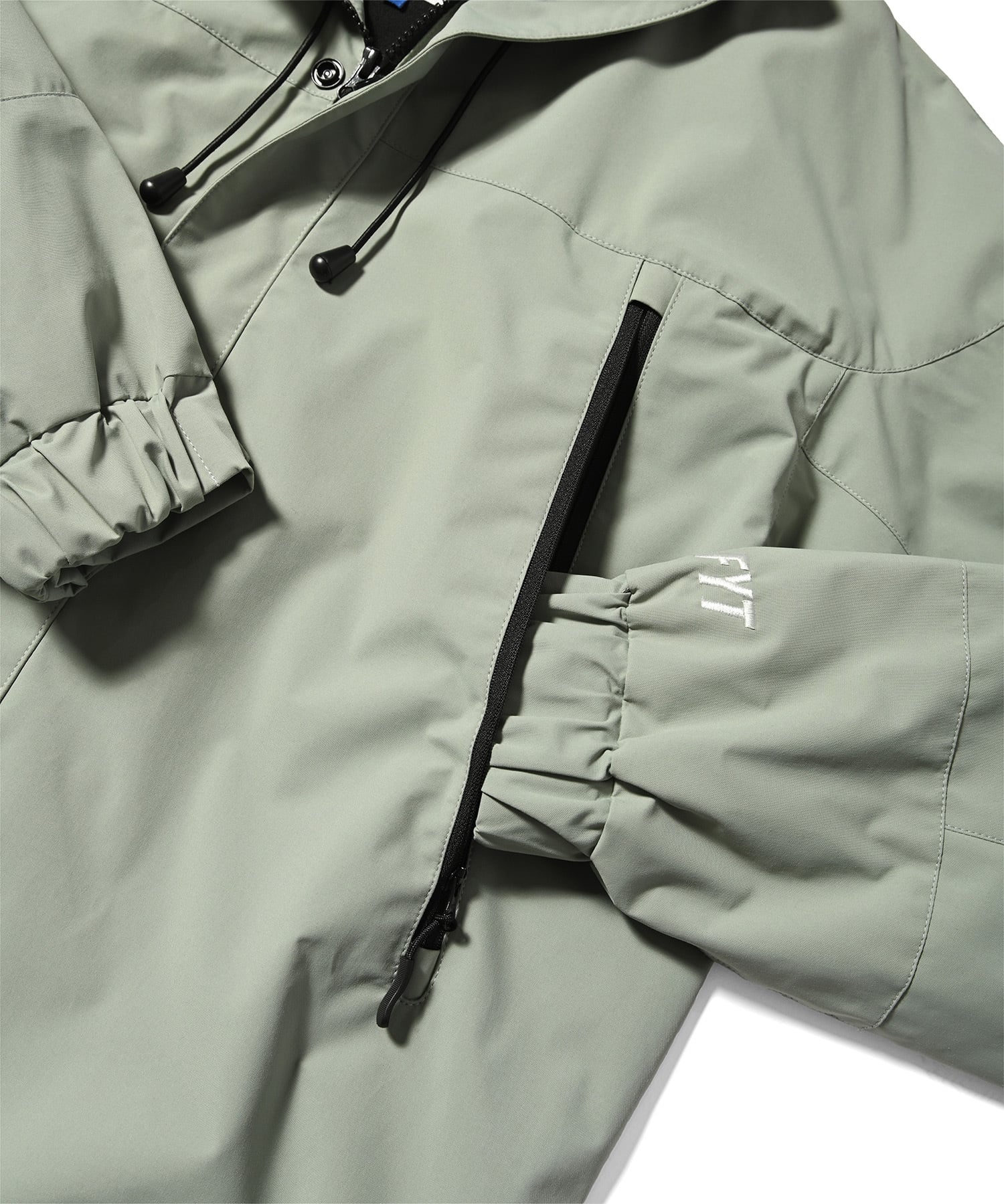防水性と透湿性を備えた2レイヤーポリエステル素材を使用したマウンテンパーカー。